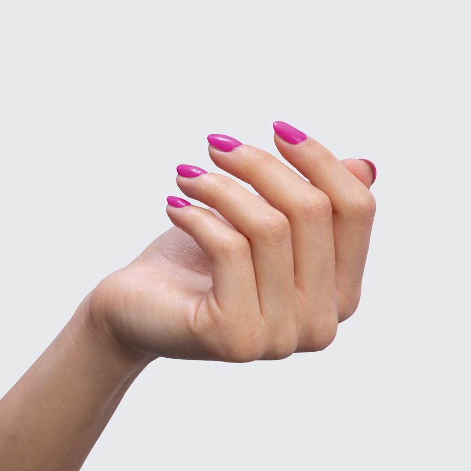 Neon barbie pink. Semi-gloss. Bright. Opaque. Cool undertone.